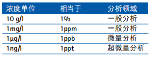 原子光譜法是一種無機物微量分析方法,不同儀器分析的濃度范圍也有差異,大致如下: