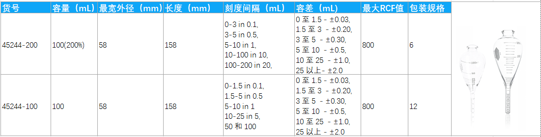 45243-200和45243LF-200型號的刻度以百分比表示,100毫升對應200%的刻度