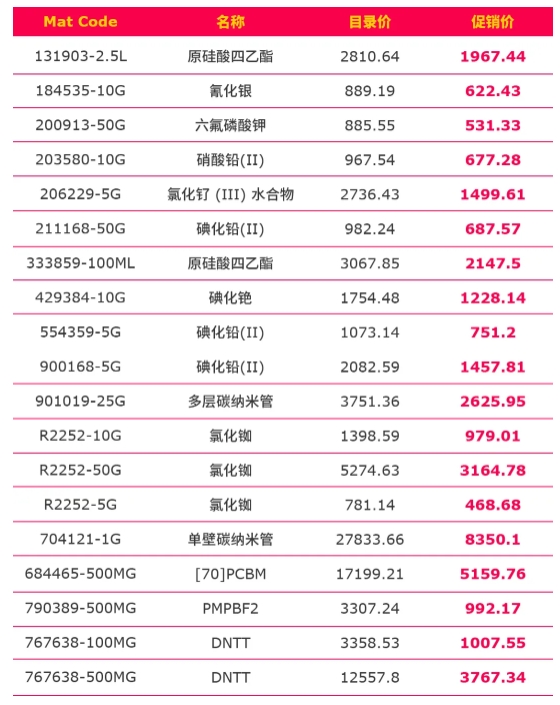 即日起,用于鈣鈦礦和光電的相關(guān)產(chǎn)品開啟促銷,完整的促銷清單可咨詢您的銷售