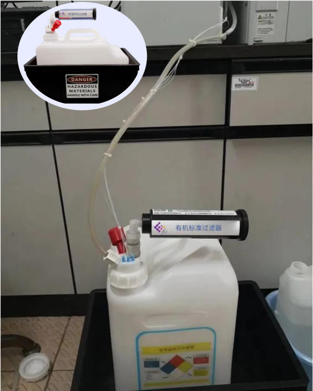 包含20L內覆膜廢液桶一個、內外蓋各一個、液相連接頭一套、過濾器快速接頭一套、無機標準過濾器一個