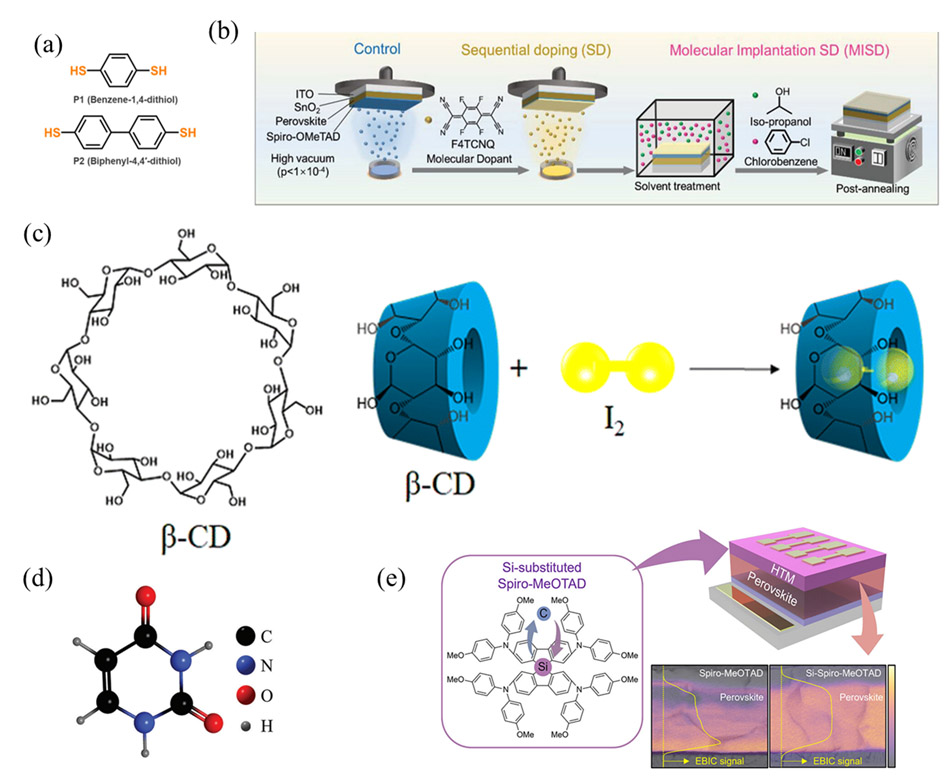 (2)反式p-i-n PSC:首先,與常規(guī)的n-i-p PSCs類似,通過適當(dāng)?shù)木w生長控制策略制備高質(zhì)量FAPbI3鈣鈦礦。其次,明年的另一個研究重點(diǎn)將是新型空穴傳輸材料的設(shè)計(jì)。例如,廣泛用于高效IPSCs的SAM分子的界面機(jī)制仍需進(jìn)一步研究,包括界面載流子動力學(xué)、與鈣鈦礦的相互作用以及SAM堆疊模式。此外,新型表征技術(shù)的發(fā)展對研究埋底界面的性質(zhì)和進(jìn)一步設(shè)計(jì)新型SAM分子具有重要意義。第三,考慮到與常規(guī)n-i-p PSCs的不同性質(zhì),開發(fā)更適合IPSCs的鈣鈦礦表面鈍化劑對于進(jìn)一步提高器件效率至關(guān)重要。