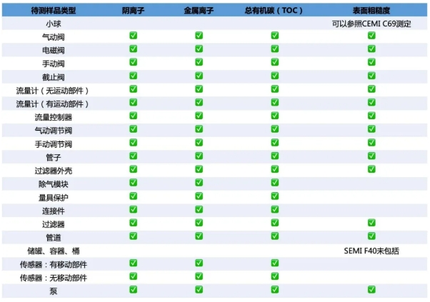 根據標準SEMI F57:用于超純水和液態(tài)化學品輸送系統(tǒng)的聚合物材料及組件的規(guī)范文件要求,評價半導體輸送管道的性能,鑒于浸泡液的成分多樣性,需要儀器具有極強的抗干擾能力,同時對于潔凈與污染的評估需求,需要儀器既具有高靈敏度,又具有寬范圍的能力。